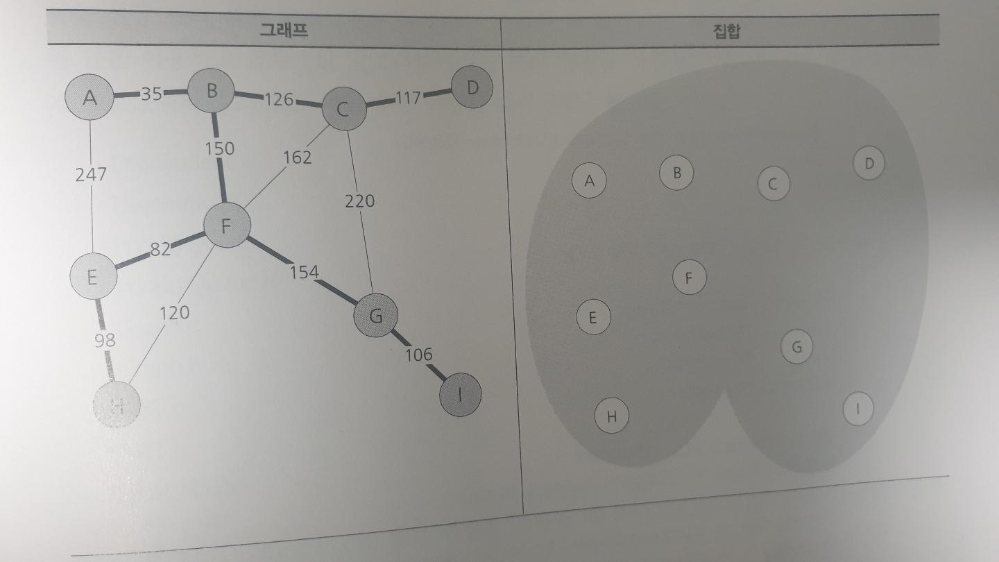 간선을 가중치 순으로 정하고 각 정점 별로 분리 집합을 만들어주면 준비가 끝난다.