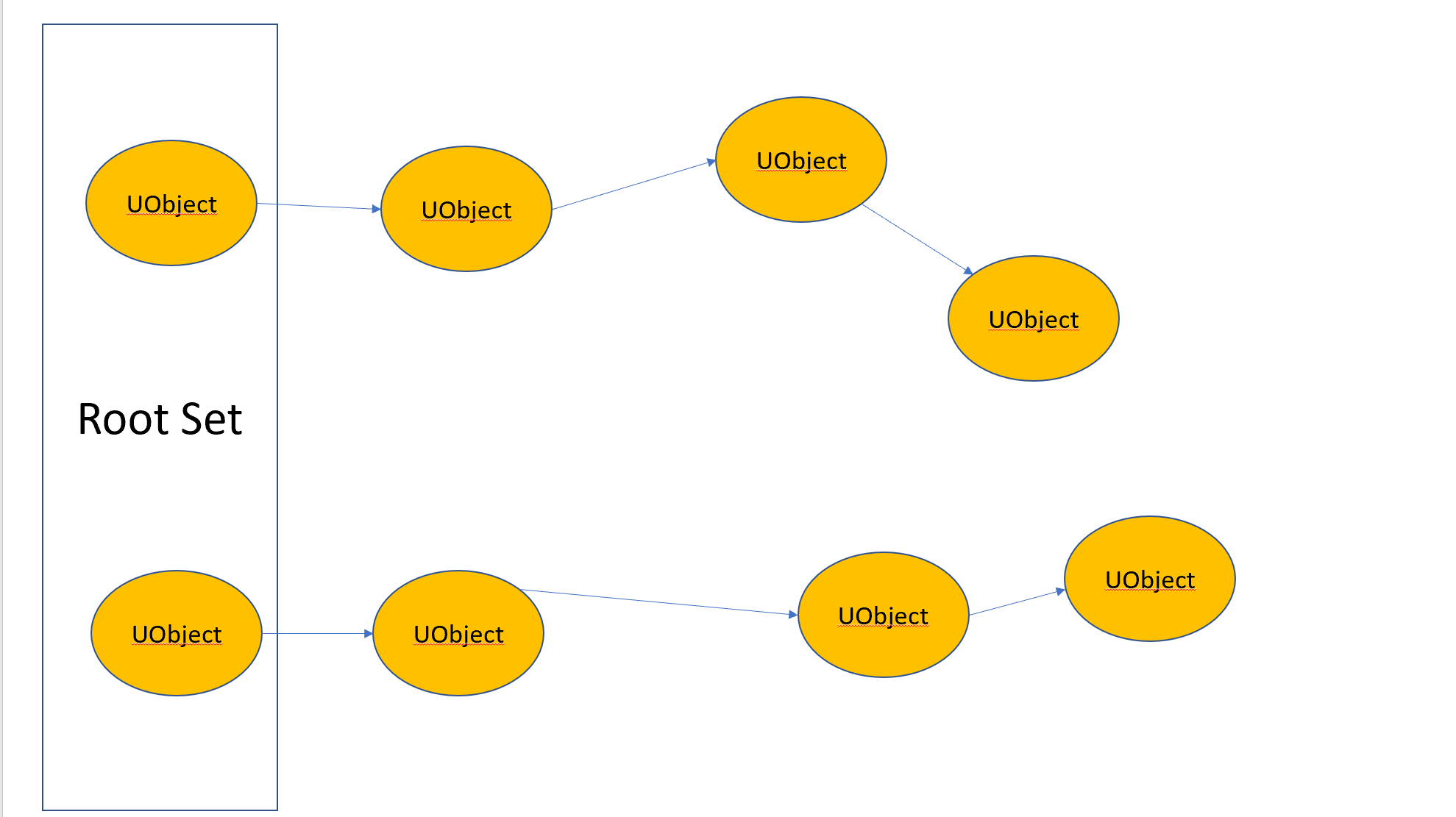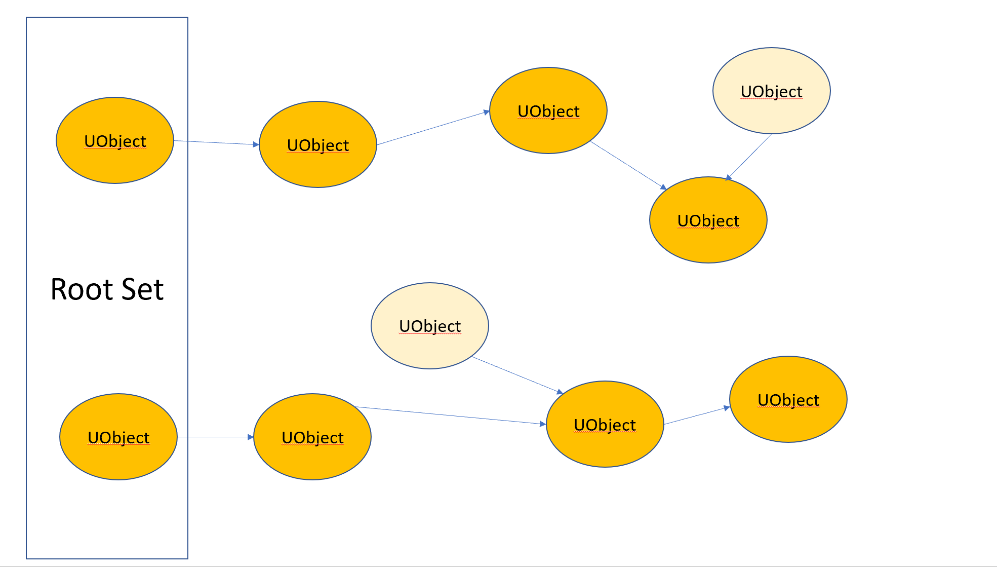 가비지 컬렉션이 발생하면, 엔진은 루트부터 시작해서 알려준 UObject 레퍼런스 트리를 검색하여 참조된 오브젝트를 전부 추적하고,