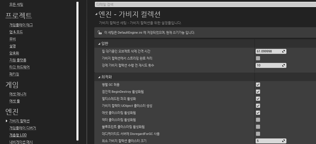 언리얼엔진에서의 가비지컬렉션 관련설정