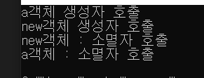 6. a객체 소멸자 호출 : main 함수로 돌아와 main함수 종료되며 a이름 객체 소멸
