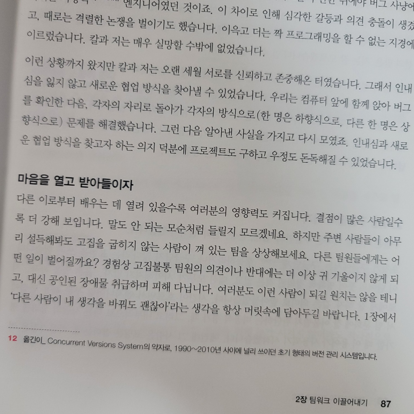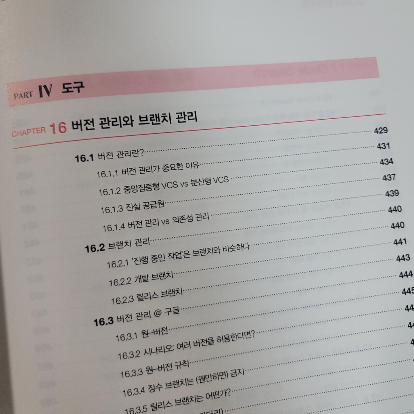 마지막 파트4는 일할때 사용하는 "도구"들에 대한 부분들로 "버전 관리", "빌드 시스템과 빌드철학" 일 처리에 도움이 되는 부분들을 기술해주고 있다.
