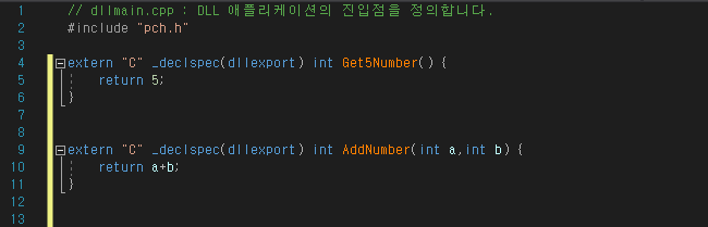 난 임시로 숫자 5를 리턴하는 Get5Number 함수와 입력받은 두 수를 더해주는 AddNumber 라는 함수를 만들어 주었다.